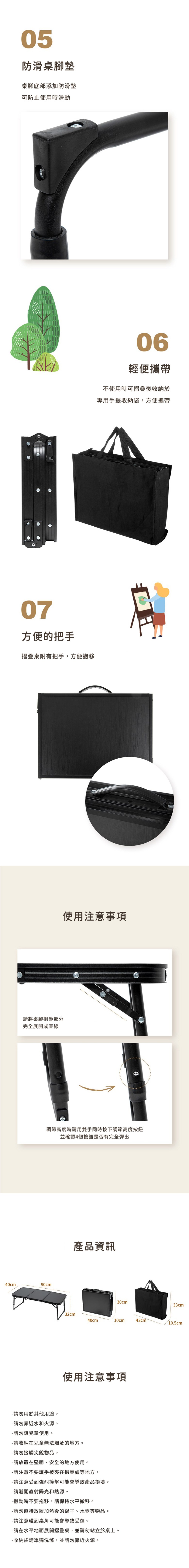 - 這款折疊桌採用輕巧耐用的鋁製框架,方便攜帶至戶外露營或野餐。