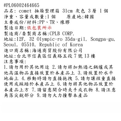 這款comet抽屜整理箱採用簡約的灰色設計,能輕易融入各種居家風格。31公分的寬度設計,特別適合小空間使用,能有效擴充收納容量,讓居家環境更加整潔。三層抽屜設計,方便您分類存放各式物品,無論是衣物、玩具或雜物,都能輕鬆收納。抽屜式設計讓您拿取物品更加方便,告別翻箱倒櫃的困擾。採用優質PP、TR、橡膠材質,堅固耐用,讓您使用更安心。