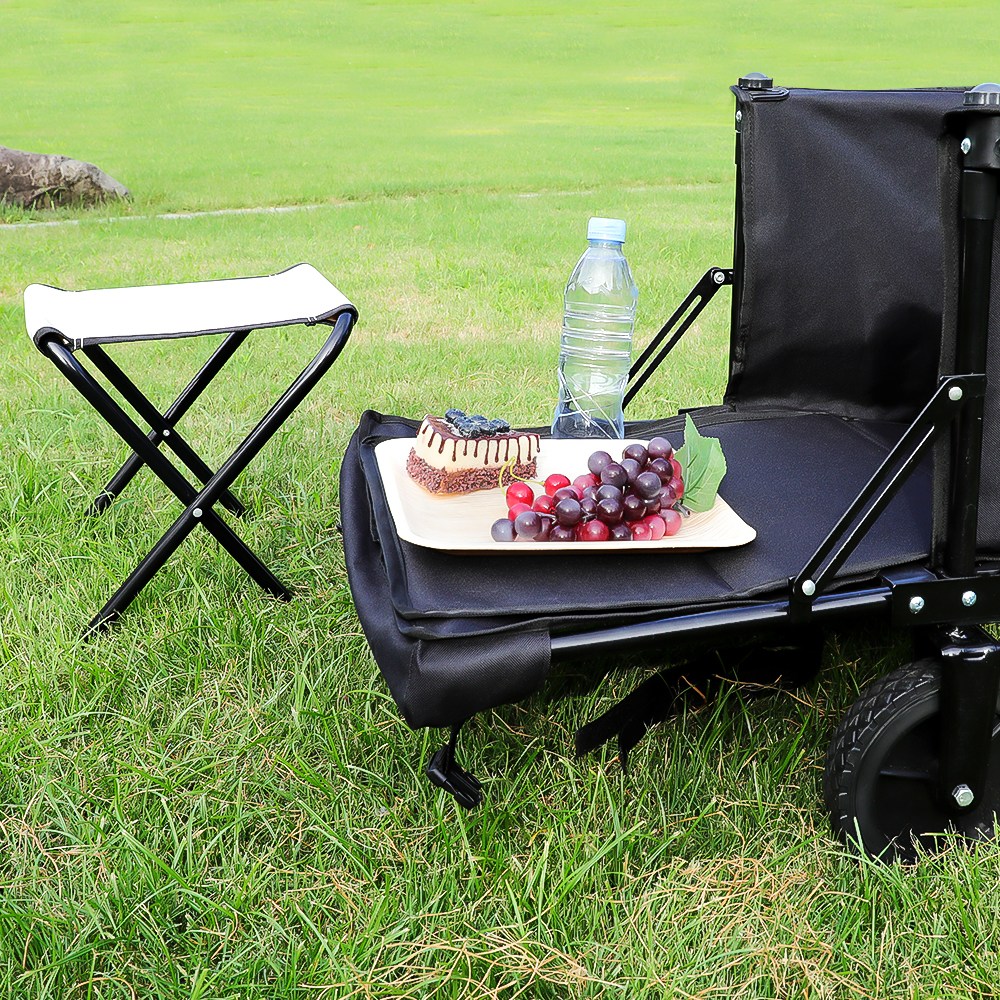 - 折疊露營推車採用耐用材質,承重可達80公斤,確保露營裝備安全穩固。