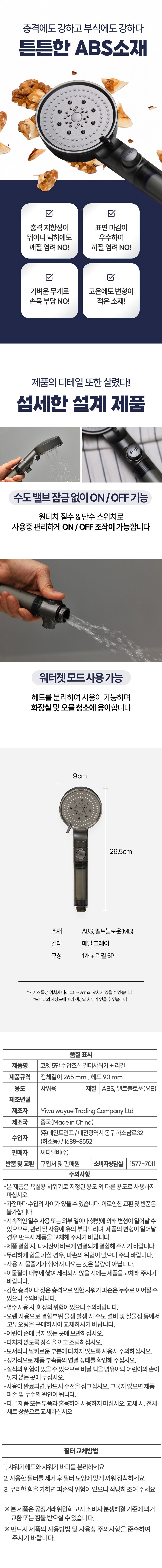 - 過濾蓮蓬頭有效去除水中雜質,提供更乾淨的淋浴水質,呵護您的肌膚。