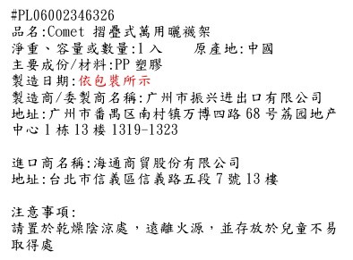 告別襪子和小型衣物晾曬的煩惱!comet Home 摺疊式萬用曬襪架,採用優質PP塑料製成,堅固耐用,一次可晾曬多件衣物。獨特的摺疊設計,方便收納,節省空間。360度旋轉掛鉤,讓您輕鬆調整晾曬角度,確保衣物均勻受光。藍色外觀簡約時尚,為您的家居生活增添色彩。無論是襪子、內衣還是其他小件衣物,這款曬襪架都能滿足您的晾曬需求,是居家生活的好幫手。