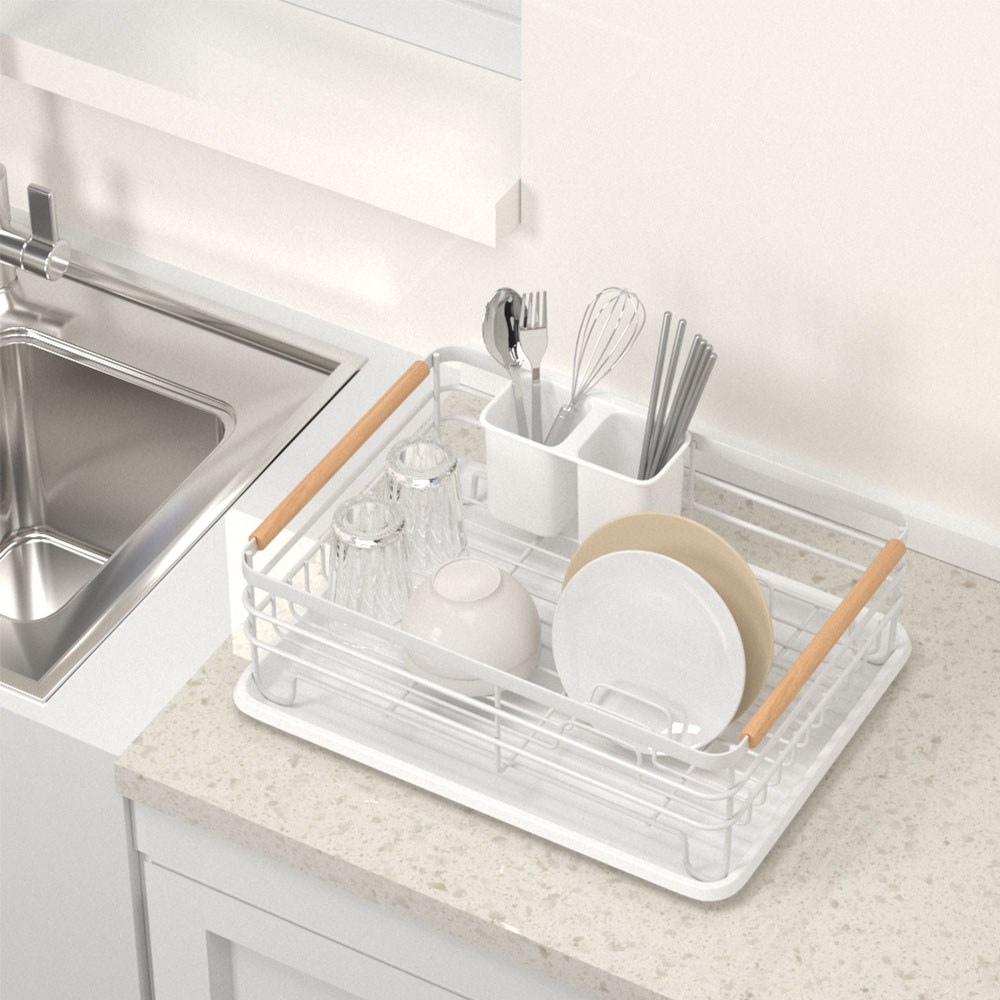 Comet 家用現代餐具瀝水架,為您的廚房帶來整潔與時尚。此款瀝水架採用分層設計,方便您將盤子、碗和餐具分類收納,告別雜亂。簡約的白色搭配木質把手,不僅實用,更提升廚房的整體美感。可拆卸的瀝水盤和餐具筒設計,讓清潔變得輕鬆簡單,保持廚房衛生。堅固耐用的材質,確保長期使用,是您廚房收納的理想選擇。