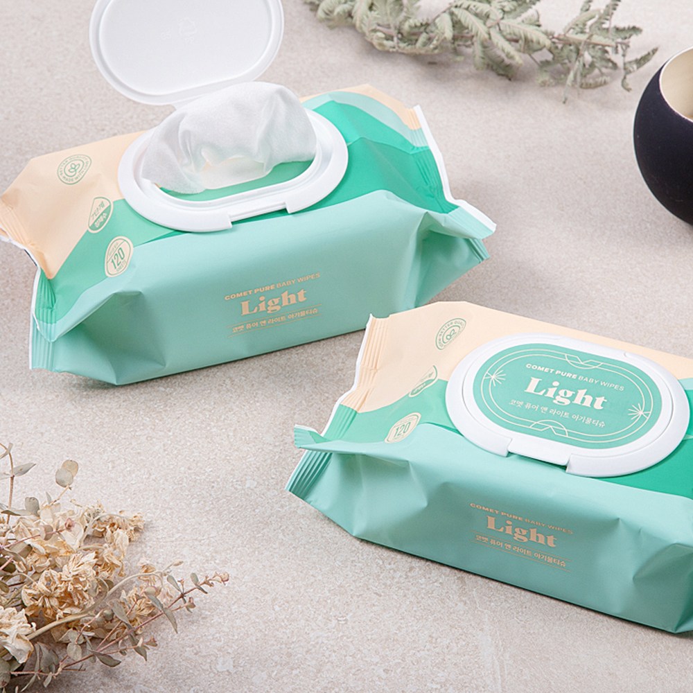 Comet Pure Light 嬰幼兒濕紙巾,給寶寶最輕柔的呵護。一箱10包,每包120張,讓您一次購足,長久使用。採用純水製造,不含酒精、香精等刺激成分,通過7階段過濾,溫和呵護寶寶嬌嫩的肌膚。掀蓋式設計,方便抽取,保持濕紙巾的濕潤度。給寶寶使用,媽媽安心。