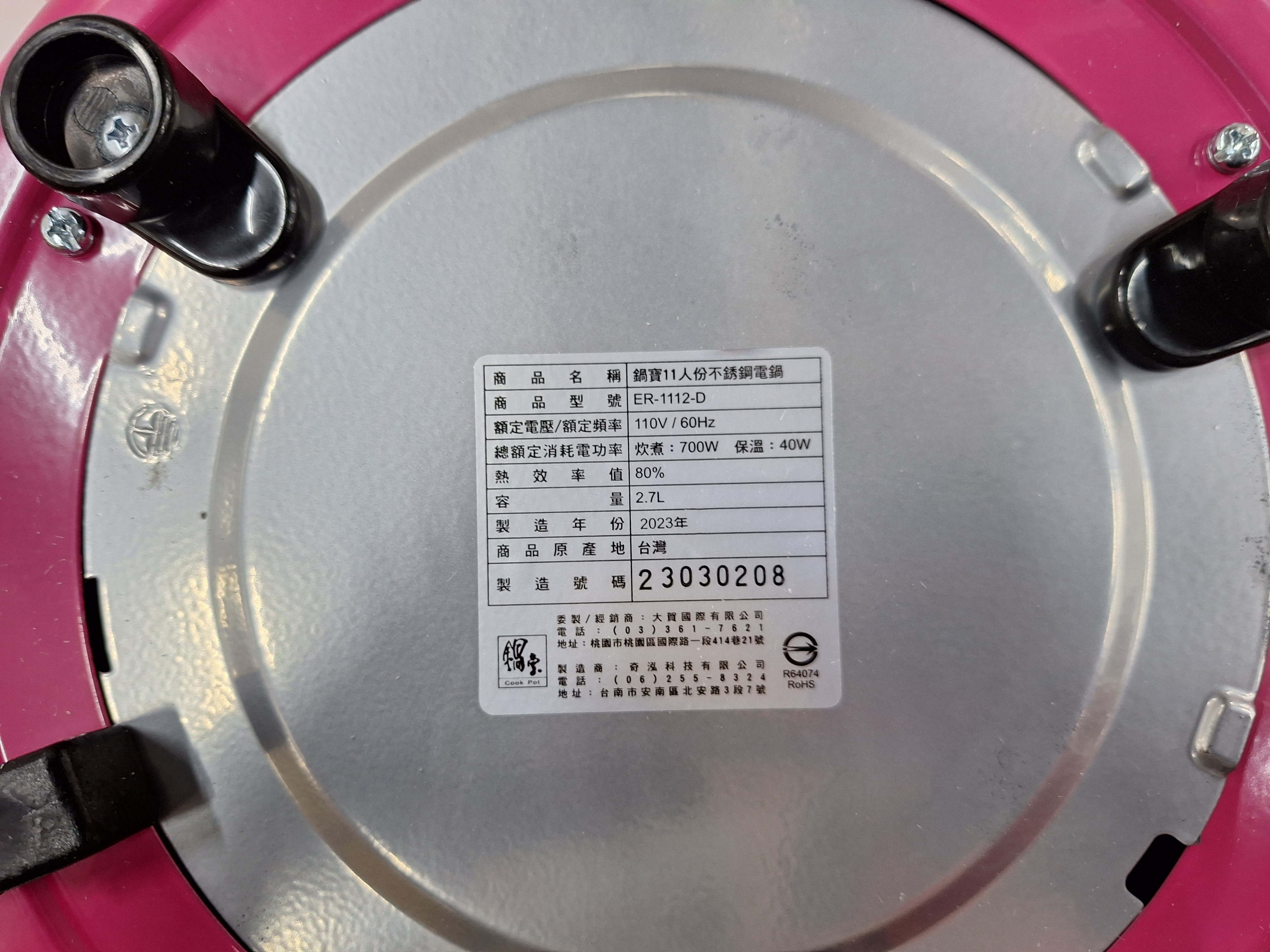 鍋寶不銹鋼電鍋 ER-1112-D,是您廚房裡不可或缺的好幫手。這款電鍋擁有2.7公升的容量,足夠11人份使用,非常適合家庭聚餐或多人料理。採用304不銹鋼內鍋和蒸架,安全耐用,讓您安心烹煮每一道佳餚。間歇式烹煮技術,使食材均勻受熱,保留食物的原汁原味。獨立保溫功能,讓您隨時都能享用到熱騰騰的美味。粉色外觀時尚美觀,為您的廚房增添一抹亮麗色彩。