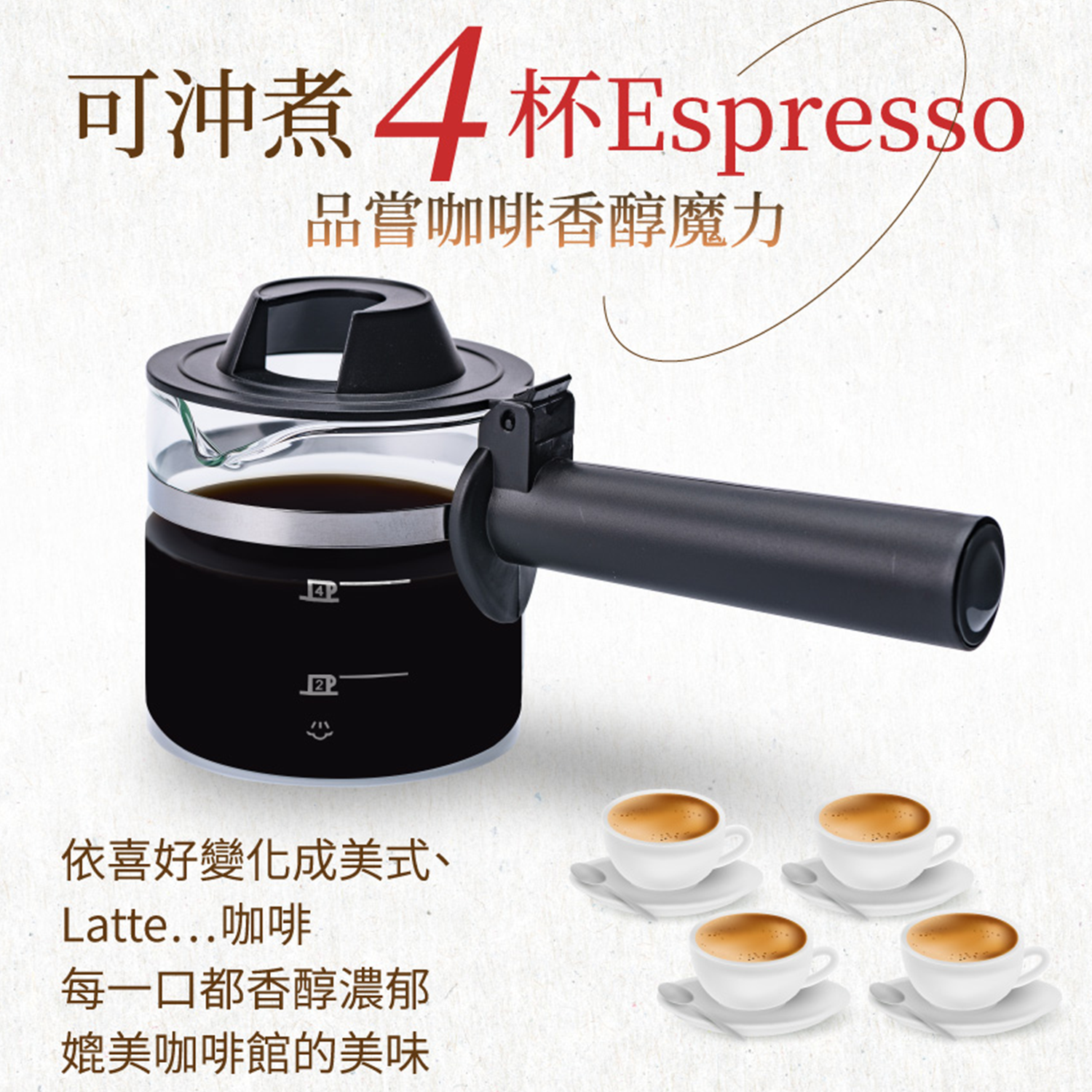 - 鍋寶咖啡機能快速萃取濃郁咖啡,讓您在短時間內品嚐到一杯完美的義式咖啡。
