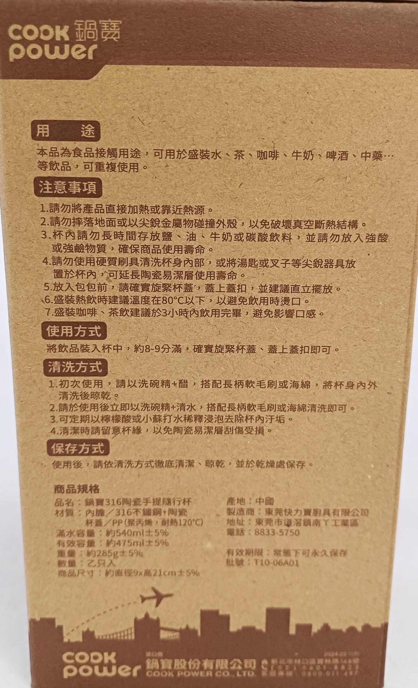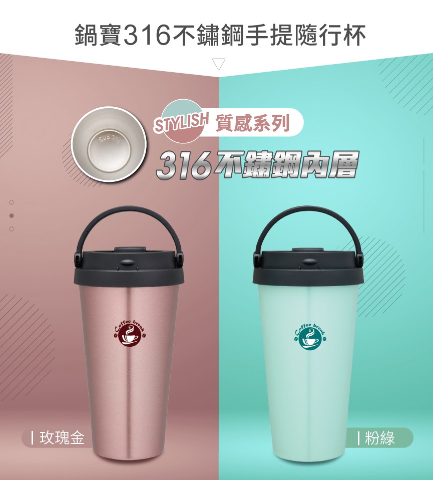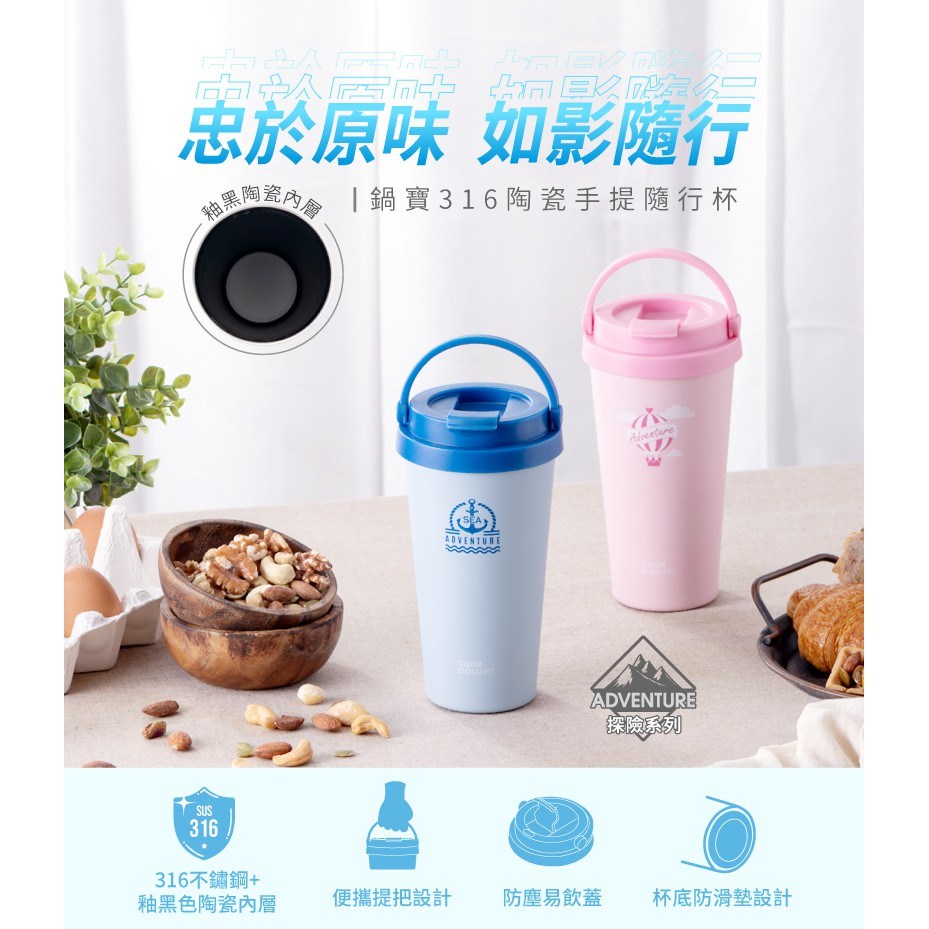 - 鍋寶陶瓷隨行杯,手提設計方便攜帶,隨時享受飲品。
