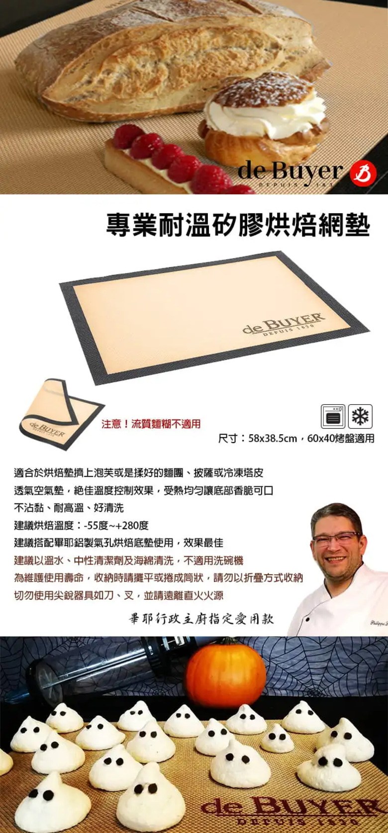 這款DE BUYER專業耐溫矽膠烘焙網墊,是您烘焙的理想選擇。尺寸為40x30公分,適用於多種烤箱。矽膠材質耐高溫,確保烘焙過程中食材受熱均勻,底部香脆可口。網狀設計透氣性佳,能有效控制溫度。不沾黏的特性讓您輕鬆取出烘焙完成品,清潔也十分方便。無論是製作餅乾、麵包還是其他烘焙點心,這款烘焙網墊都能提升您的烘焙體驗。
