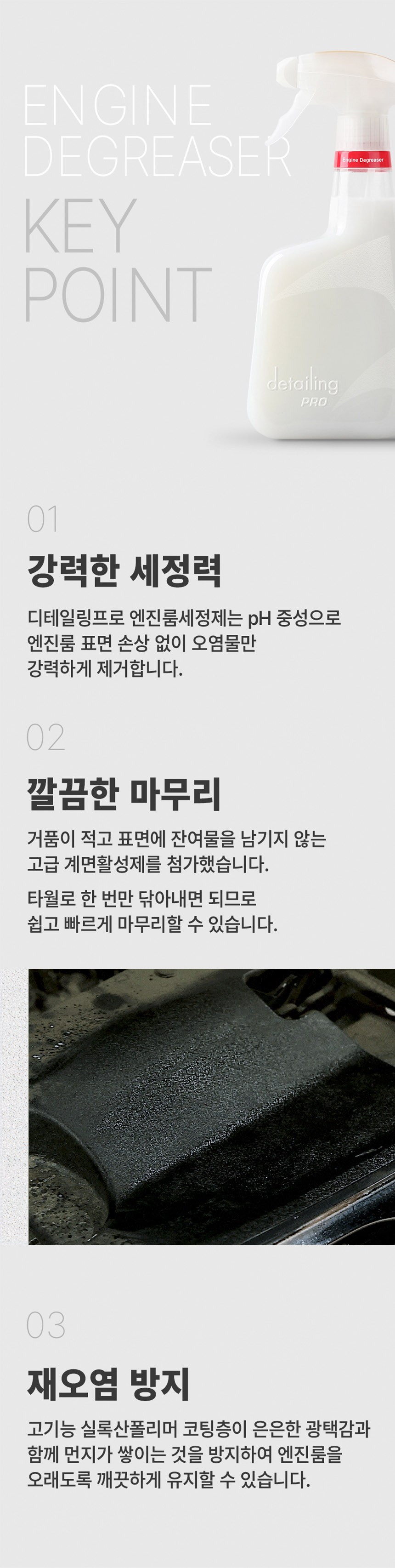 Detailing Pro引擎室清潔劑是您愛車保養的最佳選擇。其pH中性配方能強力去除引擎室內的油汙和灰塵,而不會損壞引擎表面。清潔劑採用高級界面活性劑,泡沫少且不殘留,只需輕輕擦拭即可完成清潔。此外,其獨特的高性能矽氧烷聚合物塗層還能防止灰塵再次堆積,讓您的引擎室長時間保持清潔,散發柔和光澤。使用後,引擎室煥然一新,讓您愛車更具價值。