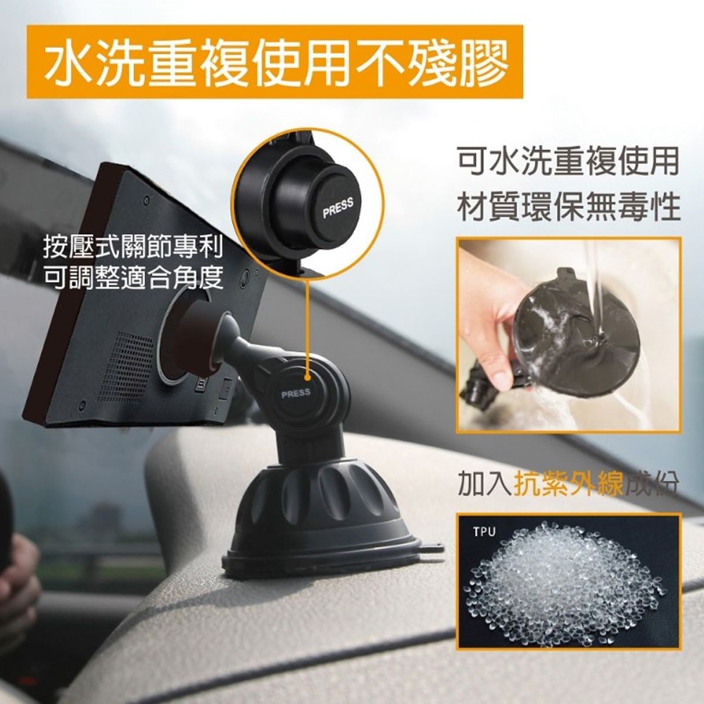 Digidock行車紀錄器支架採用頂級TPU+PU吸盤,提供超強吸力,確保行車紀錄器在各種路況下都能穩固不掉落。專利按壓式關節設計,讓您輕鬆調整至最佳視角,錄製清晰的行車畫面。此支架可水洗重複使用,不殘膠,環保無毒性材質,讓您使用。機械旋轉式底座,結構強久耐用,吸力強弱可調整,使用更方便。告別傳統PVC材質,耐高溫不易變質,是您行車紀錄器的最佳夥伴。