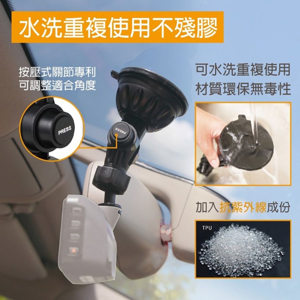 - 採用頂級TPU+PU吸盤,耐高溫抗紫外線,確保行車紀錄器在各種環境下穩固不掉落。