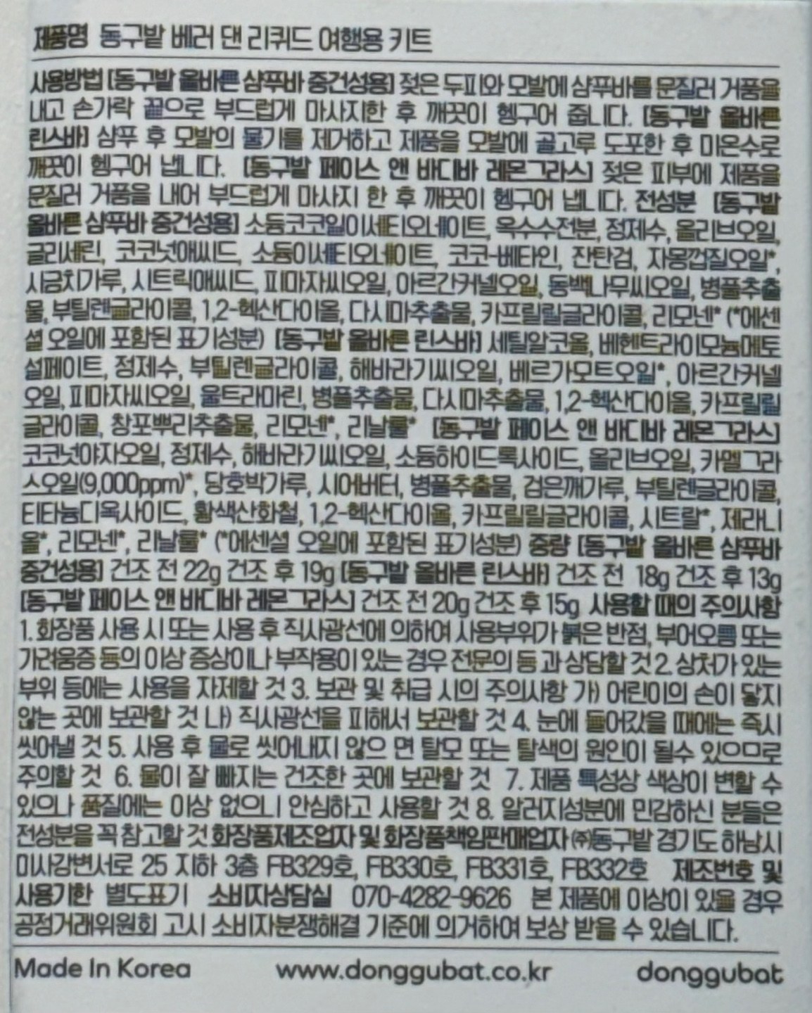 donggubat 旅行套組是您簡約生活的理想選擇。這款套組包含洗髮皂、潤髮皂和臉部身體皂,一次滿足清潔需求。採用植物來源成分,溫和不刺激,讓全家大小都能使用。固體皂設計不僅環保,也更方便攜帶,是旅行或日常使用的好夥伴。使用後肌膚清爽保濕,髮絲柔順有光澤,散發淡淡的自然香氣。
