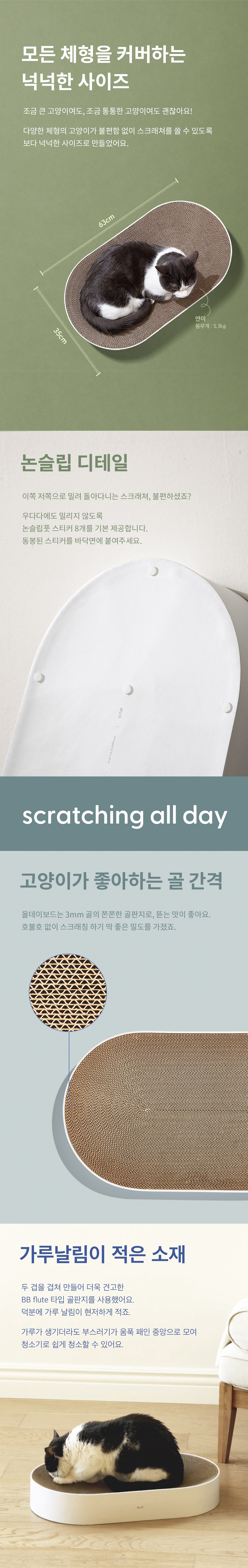 duit All Day Board貓抓板採用圓弧曲線設計,能溫柔包覆貓咪的身體,提供滿滿的安全感。加寬的橫向設計,讓貓咪無論怎麼翻滾伸展,都能自在舒適。精選高密度瓦楞紙,耐抓不易產生粉塵,保持居家環境清潔。底部配有防滑腳墊,防止貓抓板滑動,讓貓咪安心玩耍。簡約時尚的外觀,能完美融入各種居家風格,提升生活品味。給您的愛貓一個舒適又有趣的玩樂空間,就從duit All Day Board開始。