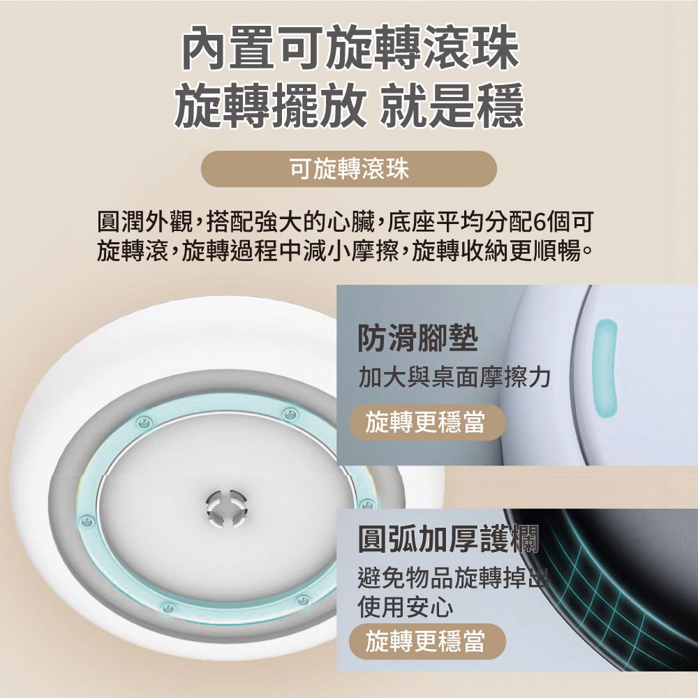 ecoco 意可可旋轉收納盒是一款實用又美觀的家居收納好物。360度旋轉設計,讓您輕鬆拿取所需物品,告別翻找的煩惱。大容量收納空間,可放置化妝品、調味罐、文具等,保持桌面整潔有序。奶油色外觀簡約時尚,融入各種家居風格。底部防滑墊設計,增加摩擦力,旋轉時更加穩固。PP、TPR材質,易於清潔,是您居家收納的理想選擇。