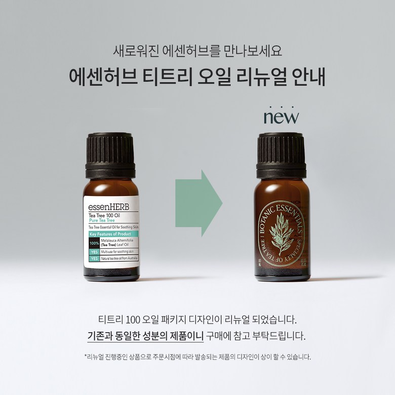 全新包裝登場!EssenHERB 茶樹100精油,以全新面貌與您見面。產品成分維持不變,請安心選購。茶樹精油自古以來就被澳洲原住民用於舒緩肌膚,以其卓越的舒緩功效而聞名。EssenHERB 致力於探索肌膚問題的解決方案,並專注於茶樹精油的運用,為您打造溫和有效的肌膚舒緩體驗。
