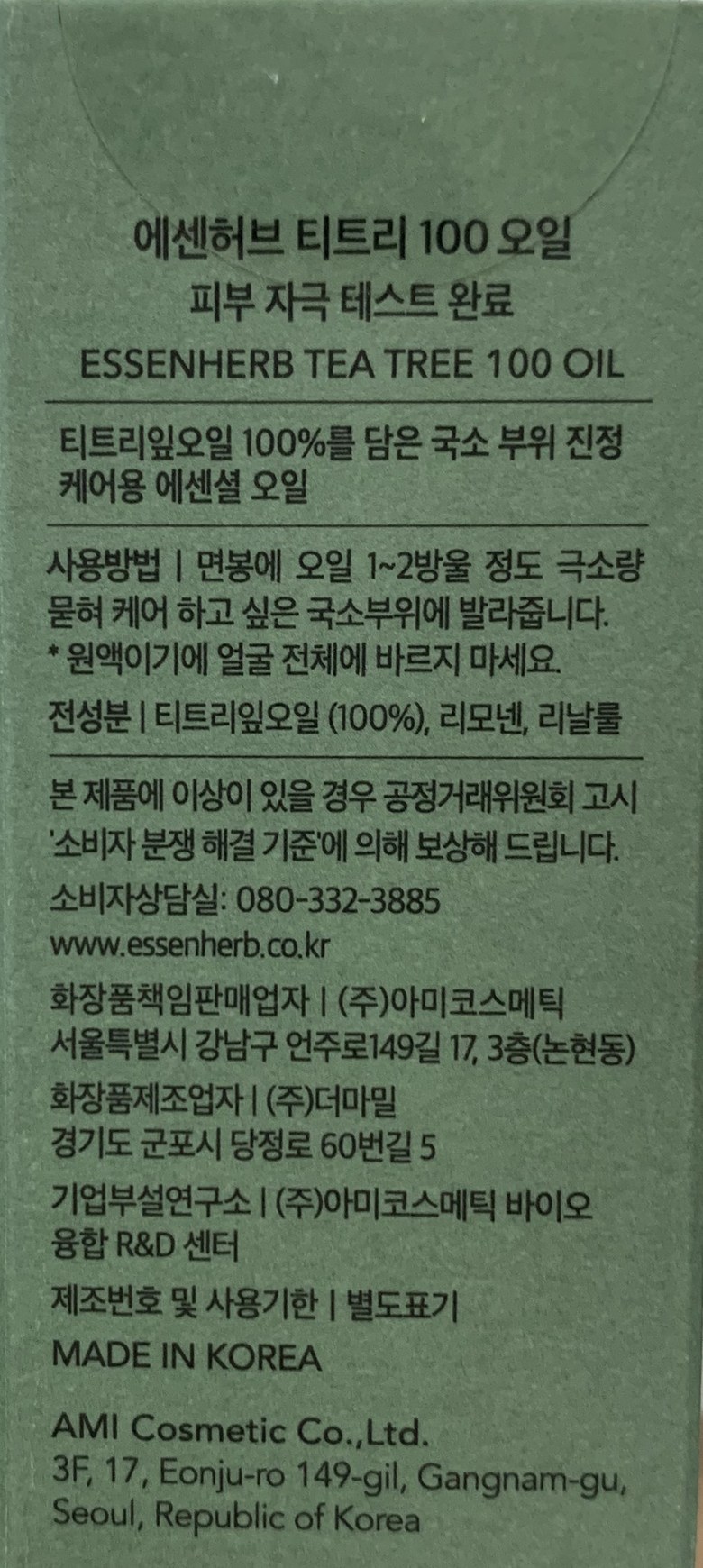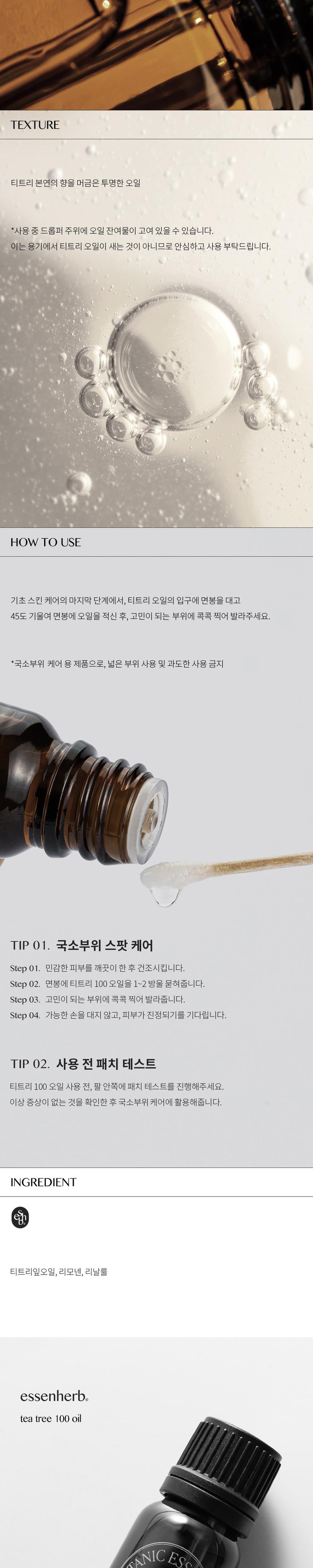 - 美容油成分: 茶樹