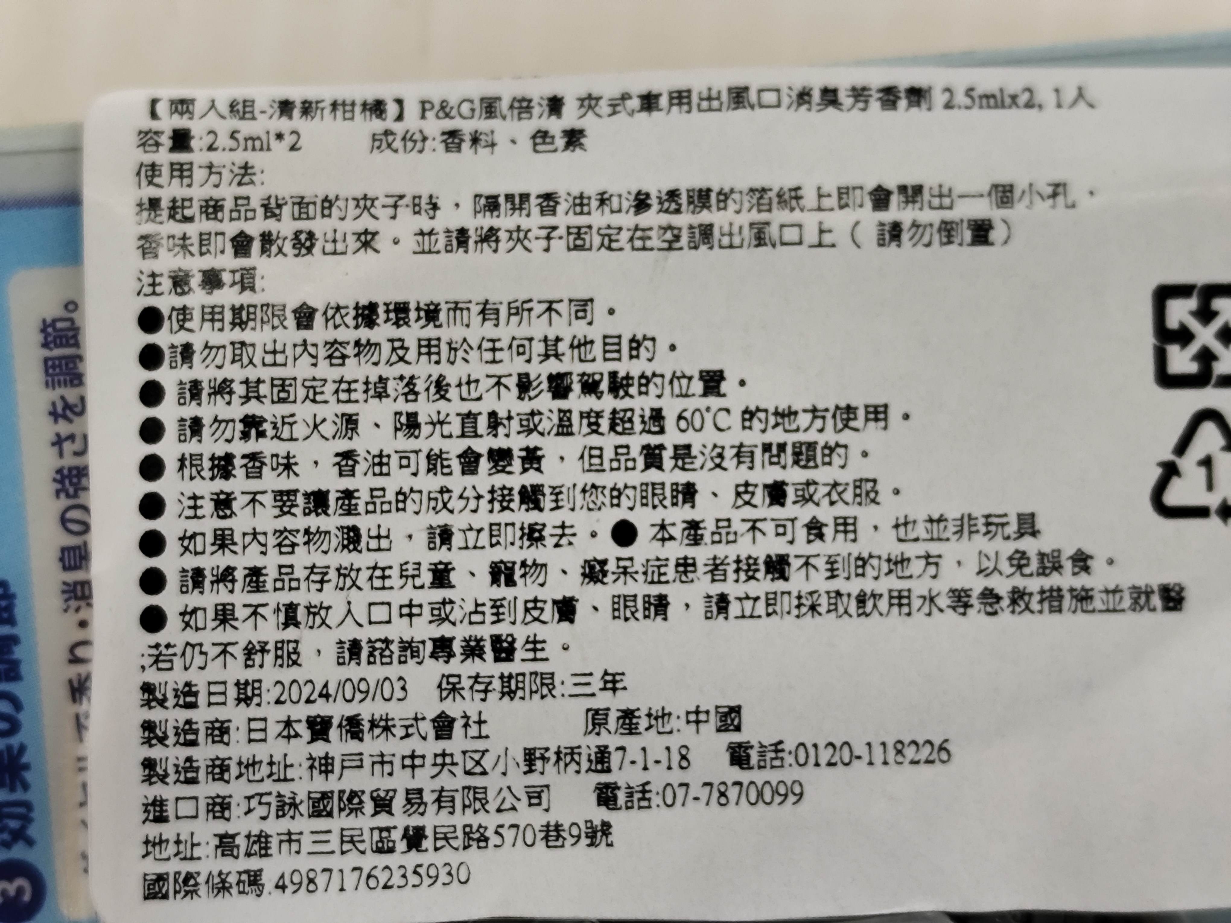 - 風倍清車用消臭劑,清新柑橘香氛,讓您每次開車都享受愉悅的氣息。