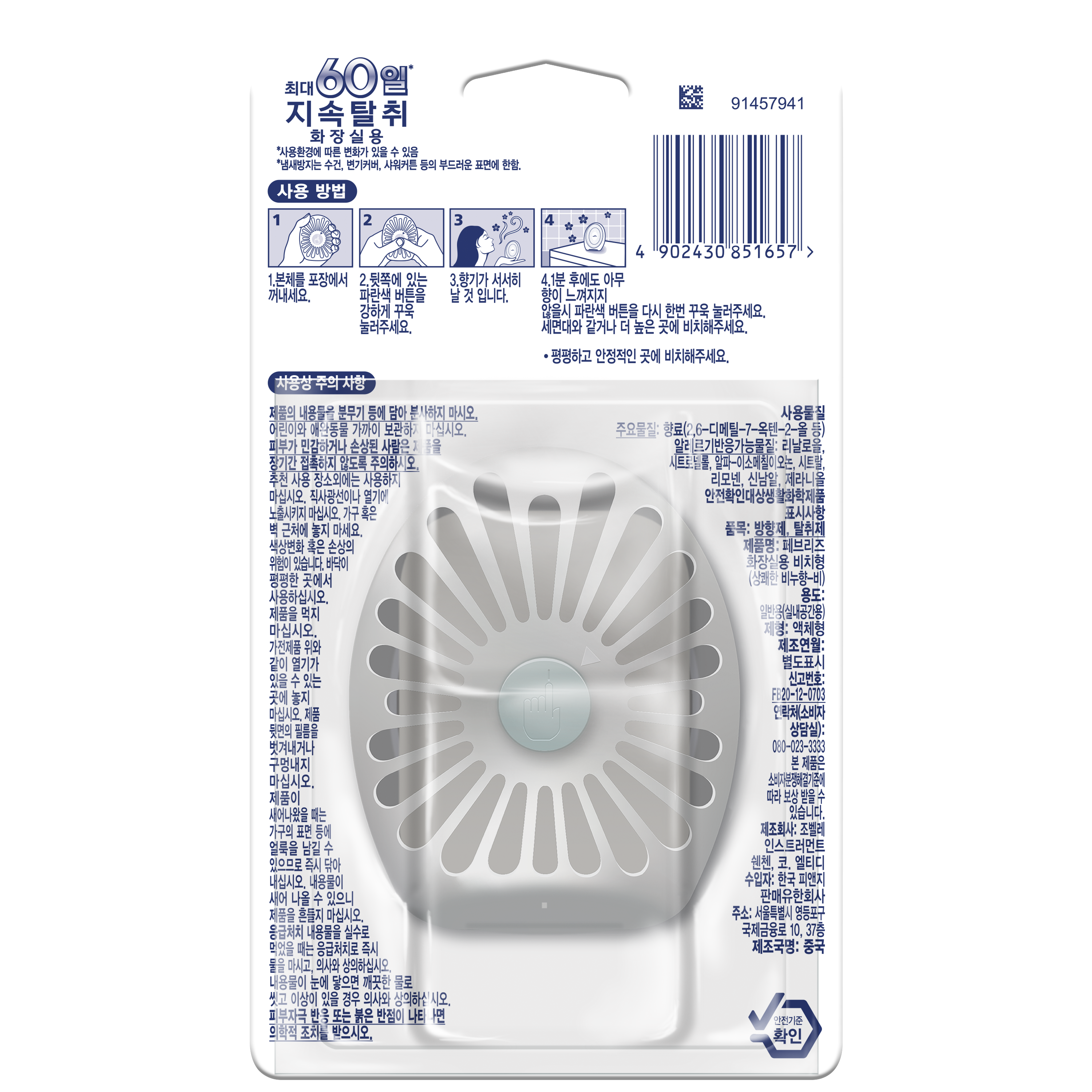 - 小巧設計不佔空間,輕鬆放置於廁所任何角落,長達60天持續散發香氣。
