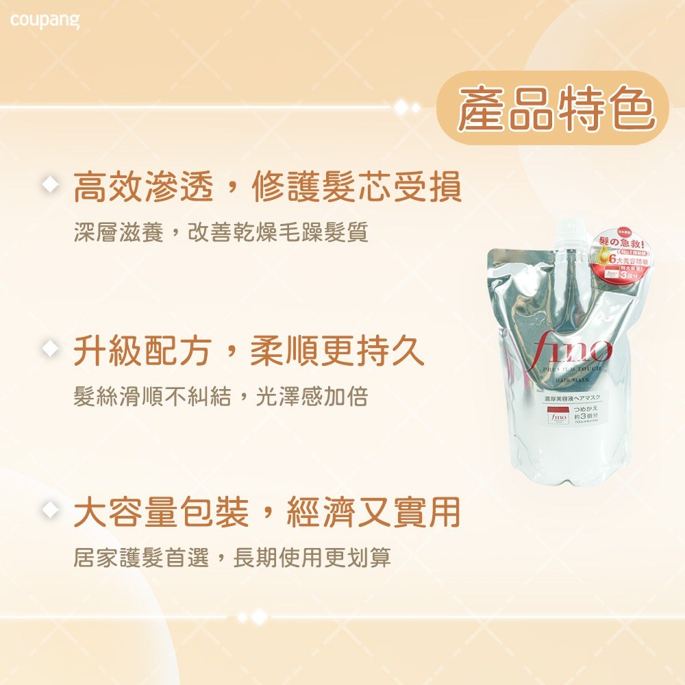fino 高效滲透護髮膜升級版補充包,專為受損髮質設計,提供深層修護與滋養。其獨特配方能深入髮芯,有效改善髮質。蘊含六大美容精華,為髮絲提供全方位的營養,讓秀髮從髮根到髮梢都散發健康光彩。大容量補充包設計,經濟實惠,讓您在家也能輕鬆享受沙龍級護髮體驗,告別毛躁,展現柔順亮澤的秀髮。