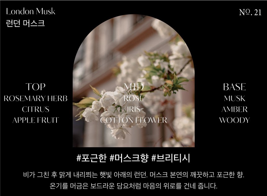 - 倫敦麝香散發溫暖香氣,洗手同時享受如香水般的持久迷人氣息,舒緩您的身心。