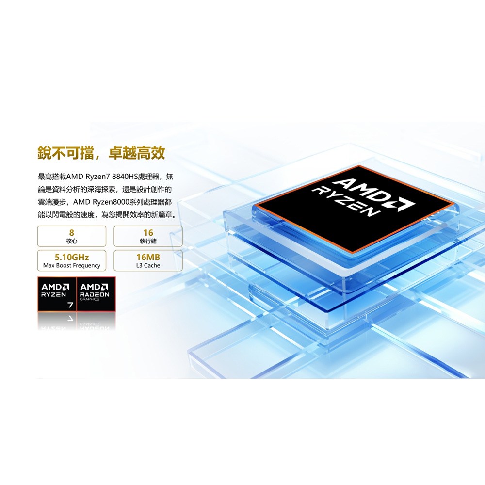- 搭載AMD Ryzen 7處理器,多工處理效能卓越,提升工作效率。