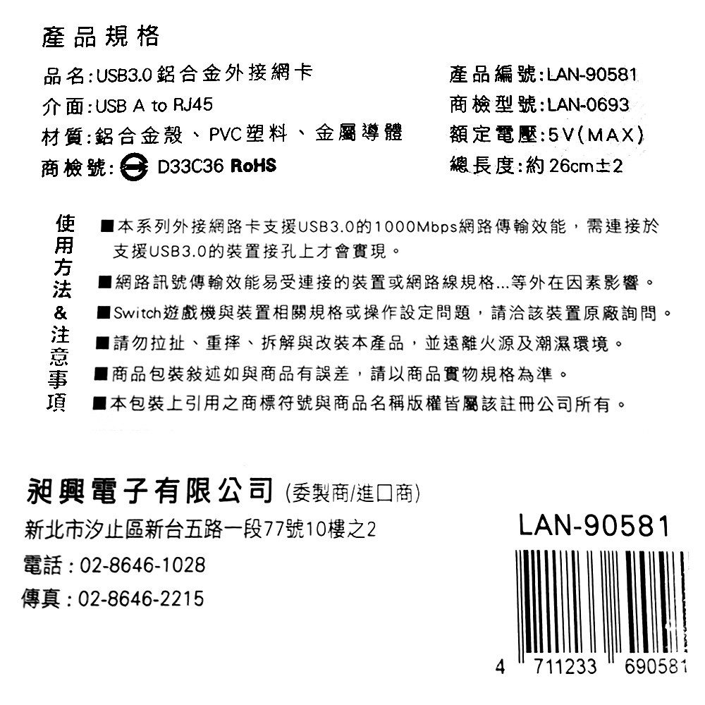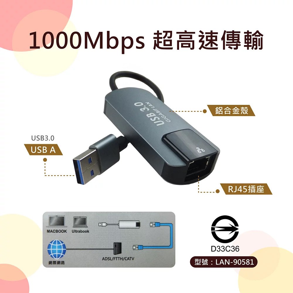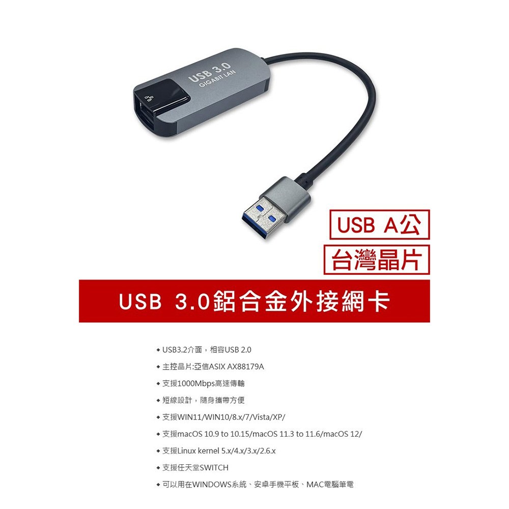 - 享受高速網路體驗,輕鬆連接USB 3.0介面,傳輸速度高達1000Mbps,提升工作效率。