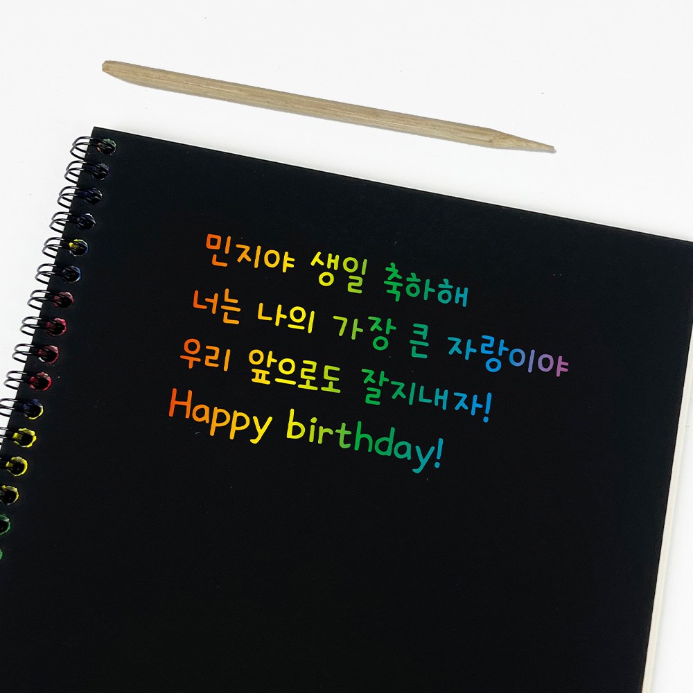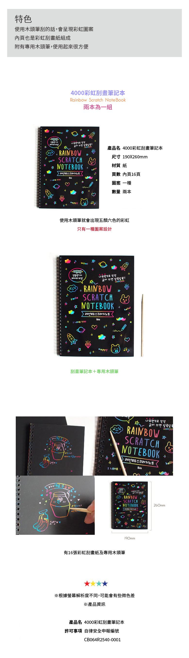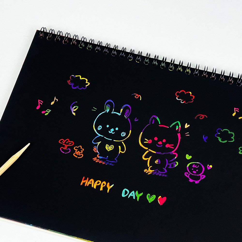 - 這款彩虹刮畫筆記本,讓孩子們盡情揮灑創意,激發無限的想像空間。