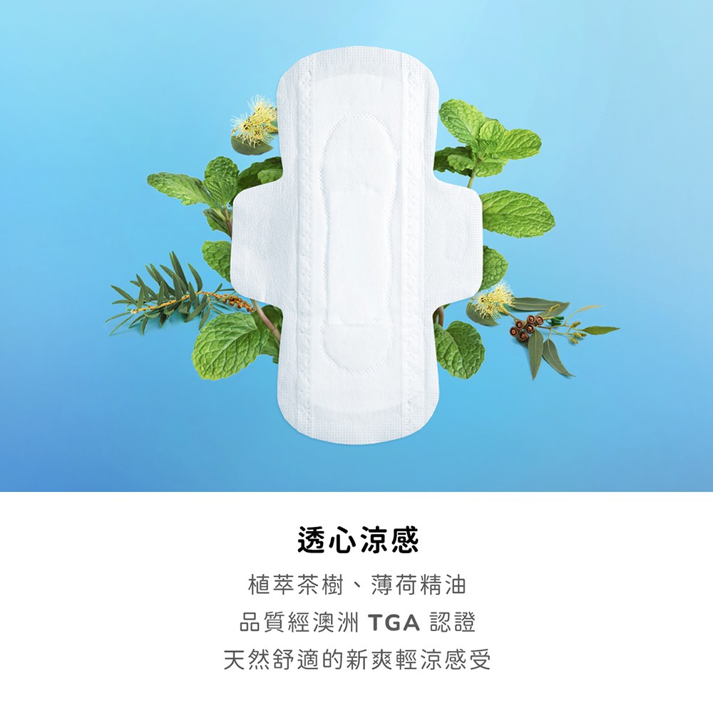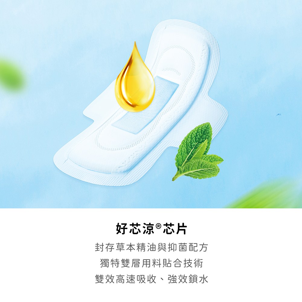 - 透芯涼感衛生棉,獨特涼感配方,舒緩悶熱不適,給您清新乾爽的感受。
