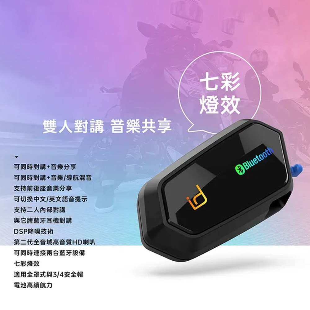 id221 MOTO A2 PRO 機車安全帽藍牙耳機,讓您在騎行中也能享受清晰通話和音樂樂趣。採用藍牙5.2技術,連接穩定快速,可與其他騎士或乘客進行雙人對講,分享音樂,讓旅途不再孤單。內建800mAh大容量電池,提供長達35小時的音樂播放時間,1.5小時即可充滿電,待機時間更長達121小時。具備IPX6防水等級,無懼風雨,讓您在各種天氣下都能安心使用。此外,耳機還具備七彩燈光效果,增添騎行樂趣,並支援中文/英文語音提示,操作簡單方便。