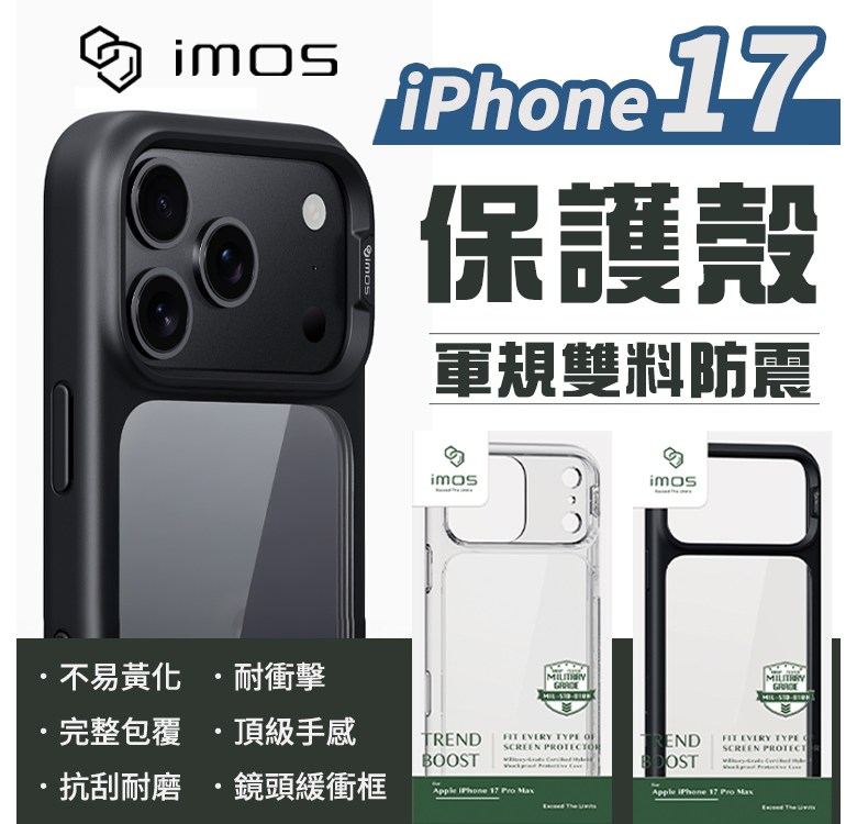 imos TREND BOOST Apple iPhone 17 Pro Max 軍規防摔手機殼, i17 黑色