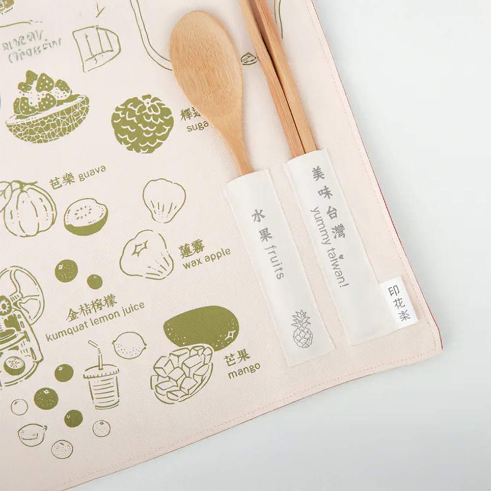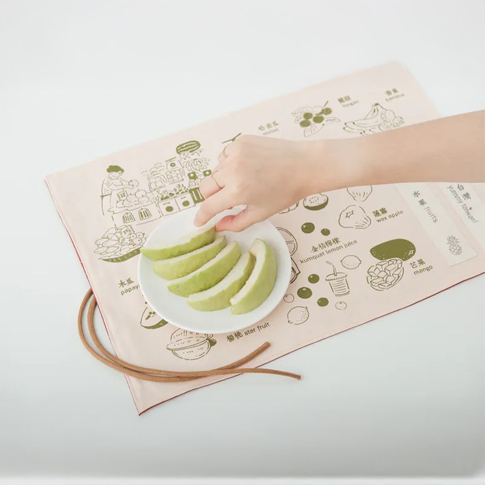 這款美味台灣餐墊套裝,包含餐墊和餐具,為您的用餐體驗增添一份台灣風味。餐墊尺寸為43 x 30公分,採用棉和聚酯纖維製成,觸感舒適且易於清潔。餐具則選用竹製。水果杏綠色調清新雅緻,搭配台灣特色水果圖案,讓您彷彿置身於台灣的果園之中。無論是居家使用還是外出攜帶,這款餐墊套裝都是您品味生活的好幫手。