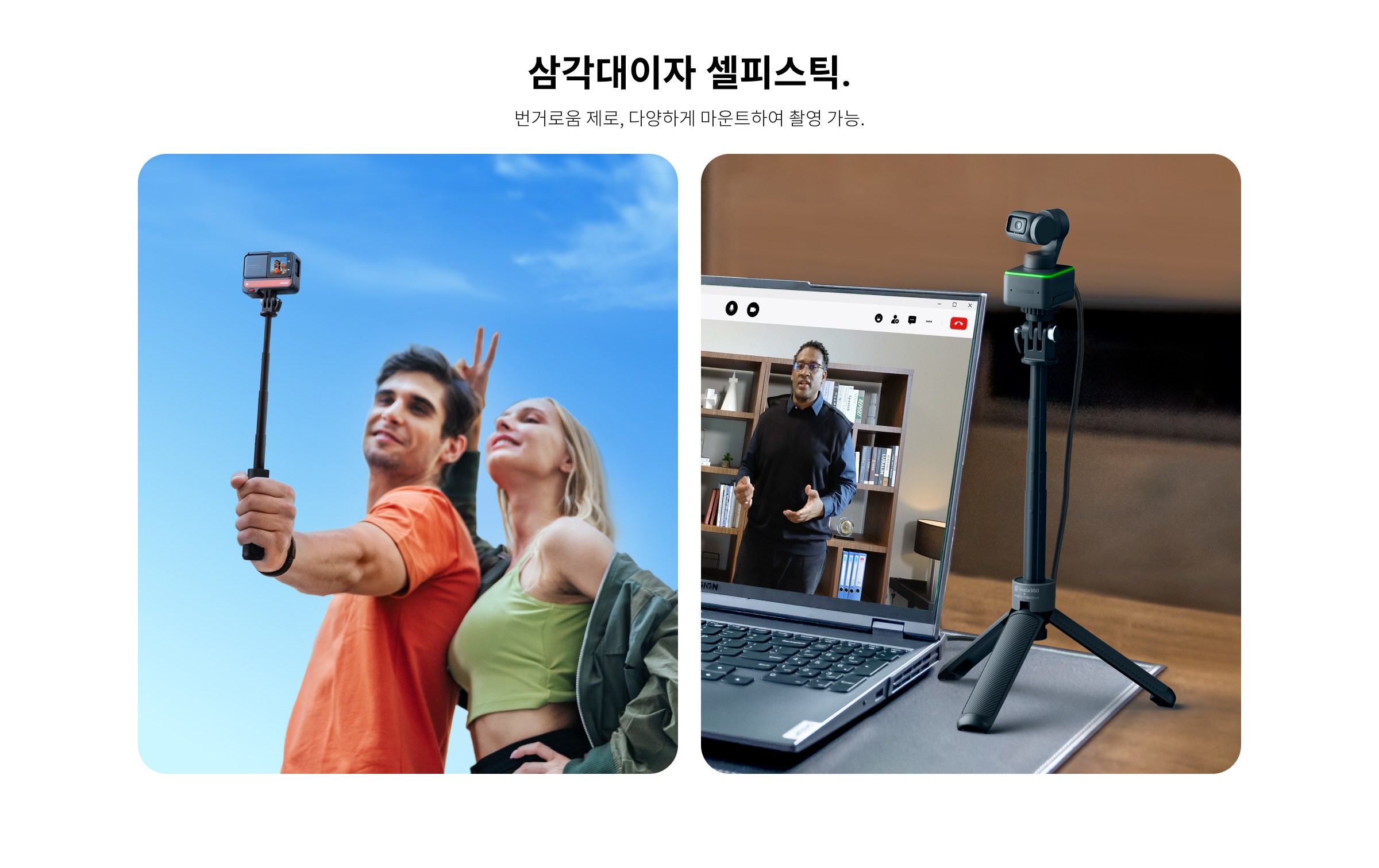- 迷你二合一設計,三腳架與自拍棒功能兼具,輕巧便攜,隨時隨地捕捉精彩瞬間。