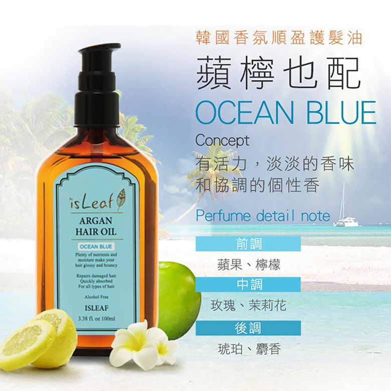 isLeaf香氛順盈護髮油 免沖洗護髮 蘋檸也配 滋養修護 柔順亮澤, 1, 100ml