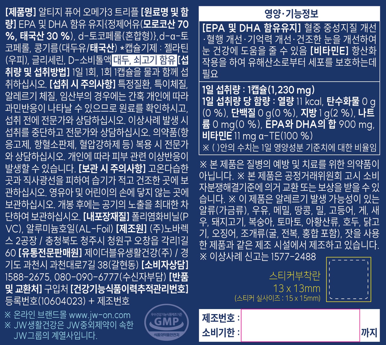 jw Pharmaceutical rYG Omega3膠囊, 1個, 30顆