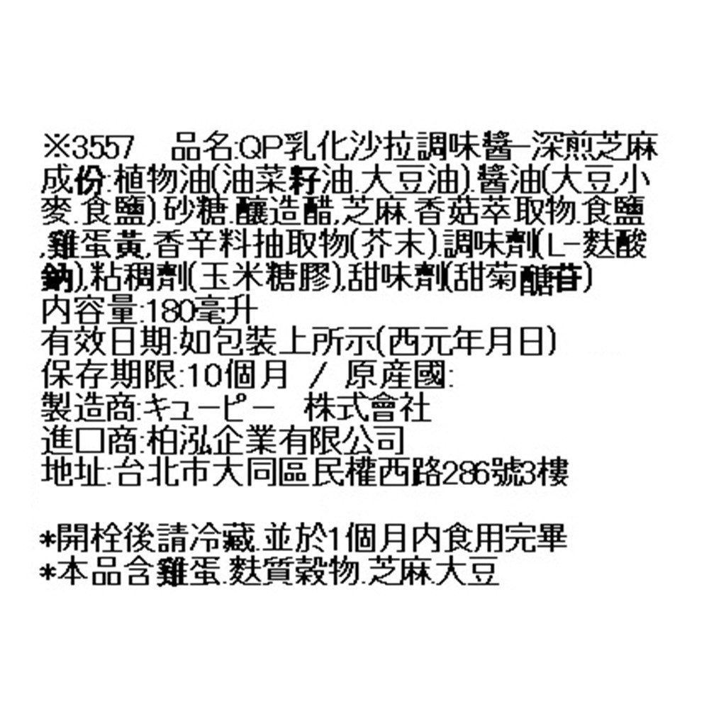 QP 深煎胡麻醬,嚴選上等白芝麻,經過深層烘焙工藝,釋放出濃郁的芝麻香氣,口感醇厚,風味獨特。不含味精,健康美味,為您的沙拉、涼拌菜增添豐富層次。180g 瓶裝,方便取用,是您餐桌上不可或缺的調味佳品。無論是搭配新鮮蔬菜、海鮮或肉類,都能帶來令人驚喜的味蕾享受。讓 QP 深煎胡麻醬為您的料理注入日式風味,提升美味體驗。