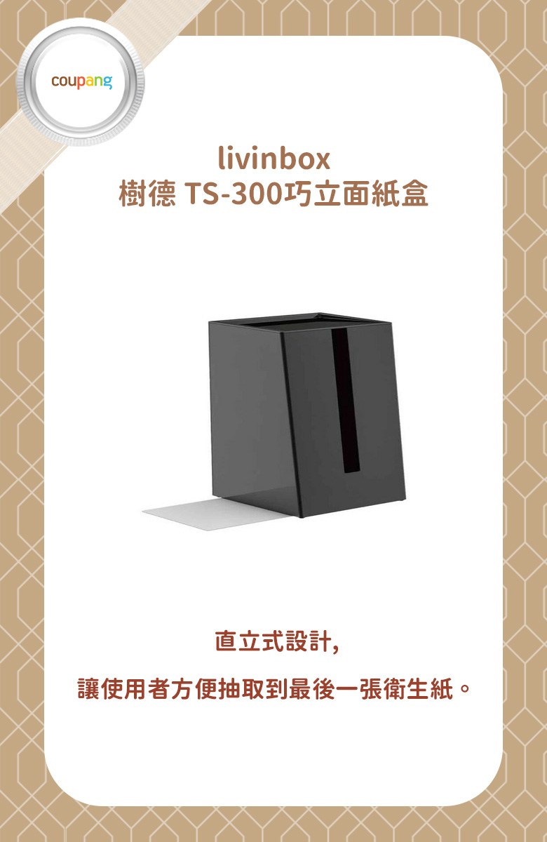 livinbox 樹德台灣巧立面紙盒 TS-300,以簡約黑色調,為您的居家空間增添一份現代感。尺寸為129.4*127.4*255mm,此款面紙盒不僅實用,更兼具裝飾性,能輕易融入各種風格的室內設計。台灣製造,品質保證,讓您安心使用。獨特的立式設計,方便抽取最後一張衛生紙,避免浪費。無論是放置在客廳、臥室或辦公室,都能展現您的品味與對生活細節的重視。
