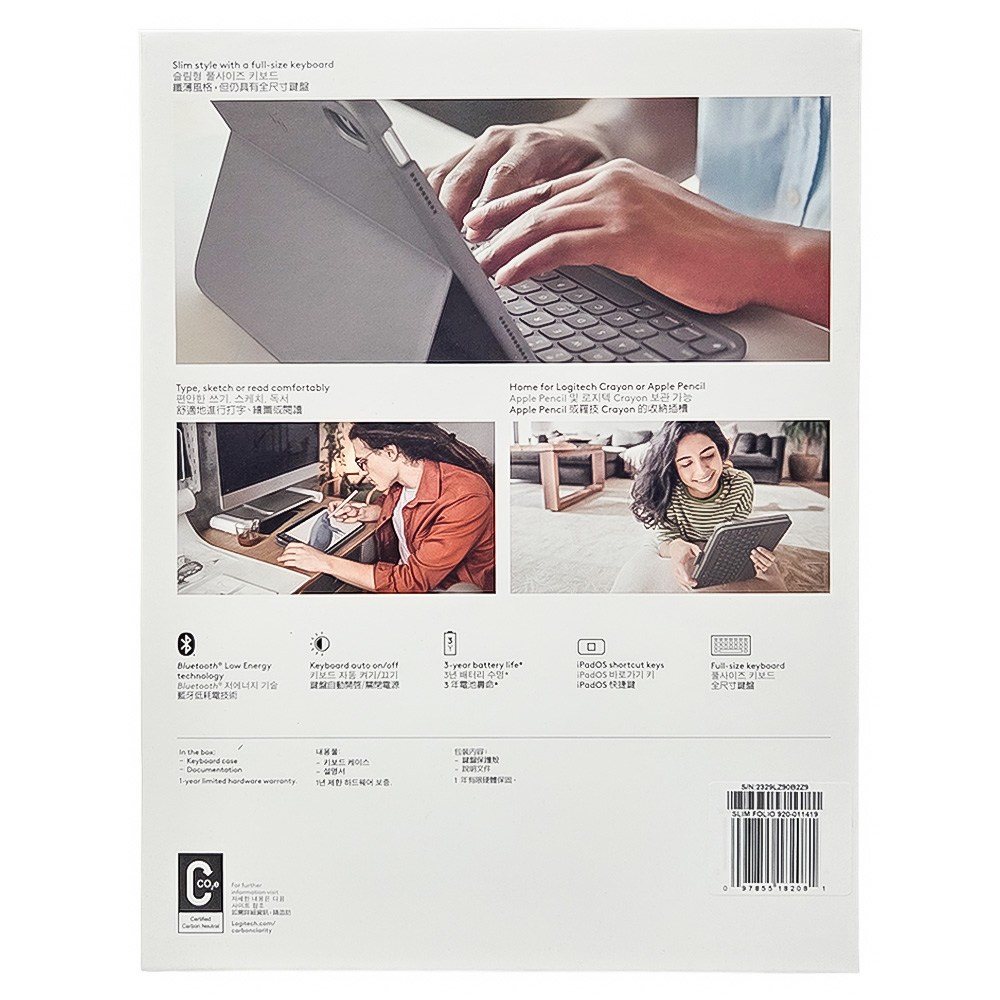 羅技 Slim Folio 輕薄鍵盤保護套專為 iPad 第 10 代設計,提供卓越的打字體驗和全方位的保護。這款輕薄的鍵盤保護套採用先進的藍牙低功耗技術,實現可靠且節能的連接,讓您隨時隨地都能高效工作。纖薄輕巧的設計風格與 iPad 的美學理念相得益彰,方便使用和隨身攜帶。此外,它還配備了一整排 iPadOS 快捷鍵,助您提升辦公效率,讓您輕鬆調整音量、媒體控制以及螢幕亮度等功能。具備兩種方便的放置角度,無論是觀看影片、打字或手寫素描,都能保持在理想的角度。此外,它還提供 Logitech Crayon 或 Apple Pencil 的雙面保護筆套,讓您的數位筆隨手收納,隨時保持最佳狀態。