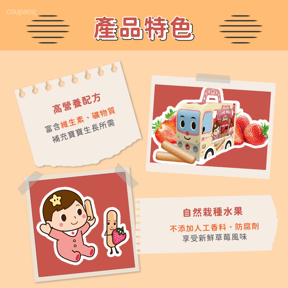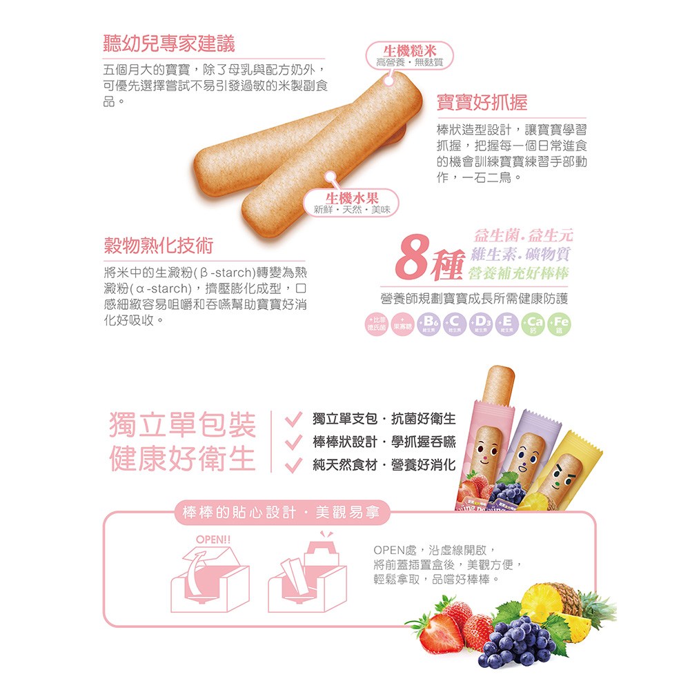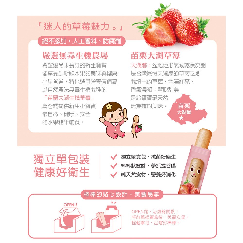 - 草莓口味棒棒餅,口感酥脆,入口即化,給寶寶帶來愉悅的味蕾體驗。