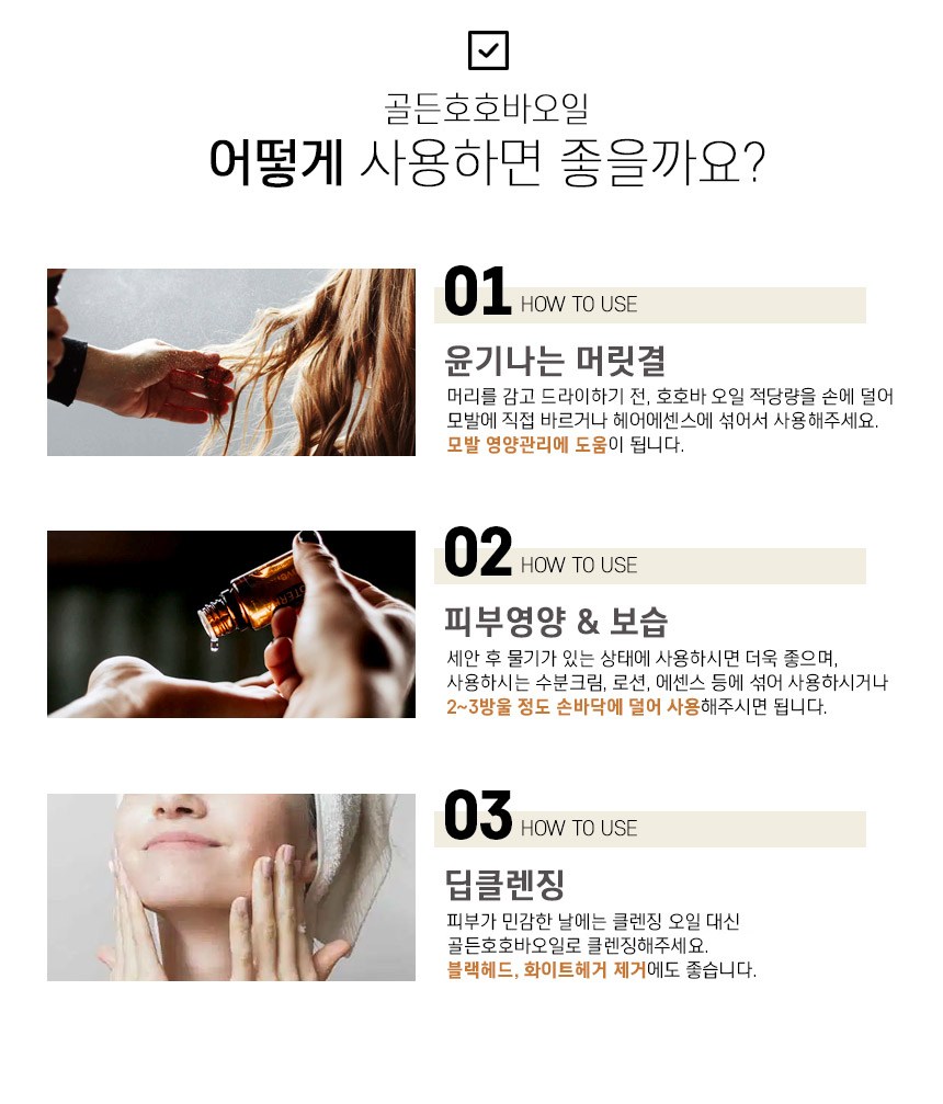 - 多用途的黃金荷荷芭油,適用於全身肌膚,能舒緩敏感不適,為肌膚提供溫和的呵護,全家適用。