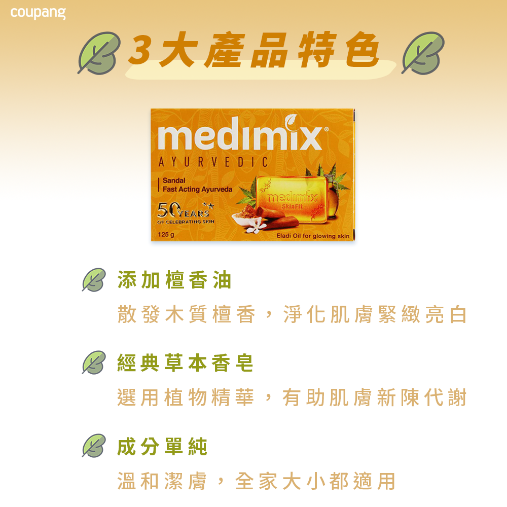 medimix 印度檀香皂,是一款源自印度阿育吠陀傳統的草本護膚皂,散發淡淡木質香氣,洗去一天疲憊,讓您在家也能享受阿育吠陀皇室藥浴般的呵護。這款美肌皂特別添加檀香油,能加強肌膚光澤及緊緻,滋養成分能保持肌膚遠離黯沉,是打造自然香氛、亮白肌膚的最佳選擇。medimix 檀香皂成分單純溫和,全家大小都適用,讓您在清潔肌膚的同時。