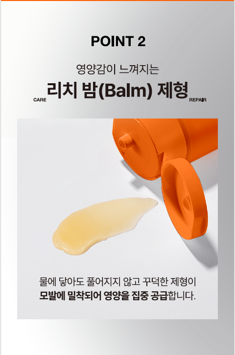 - 濃郁膏狀質地能緊密貼合髮絲,集中供給營養,改善髮質,使頭髮更加強韌。