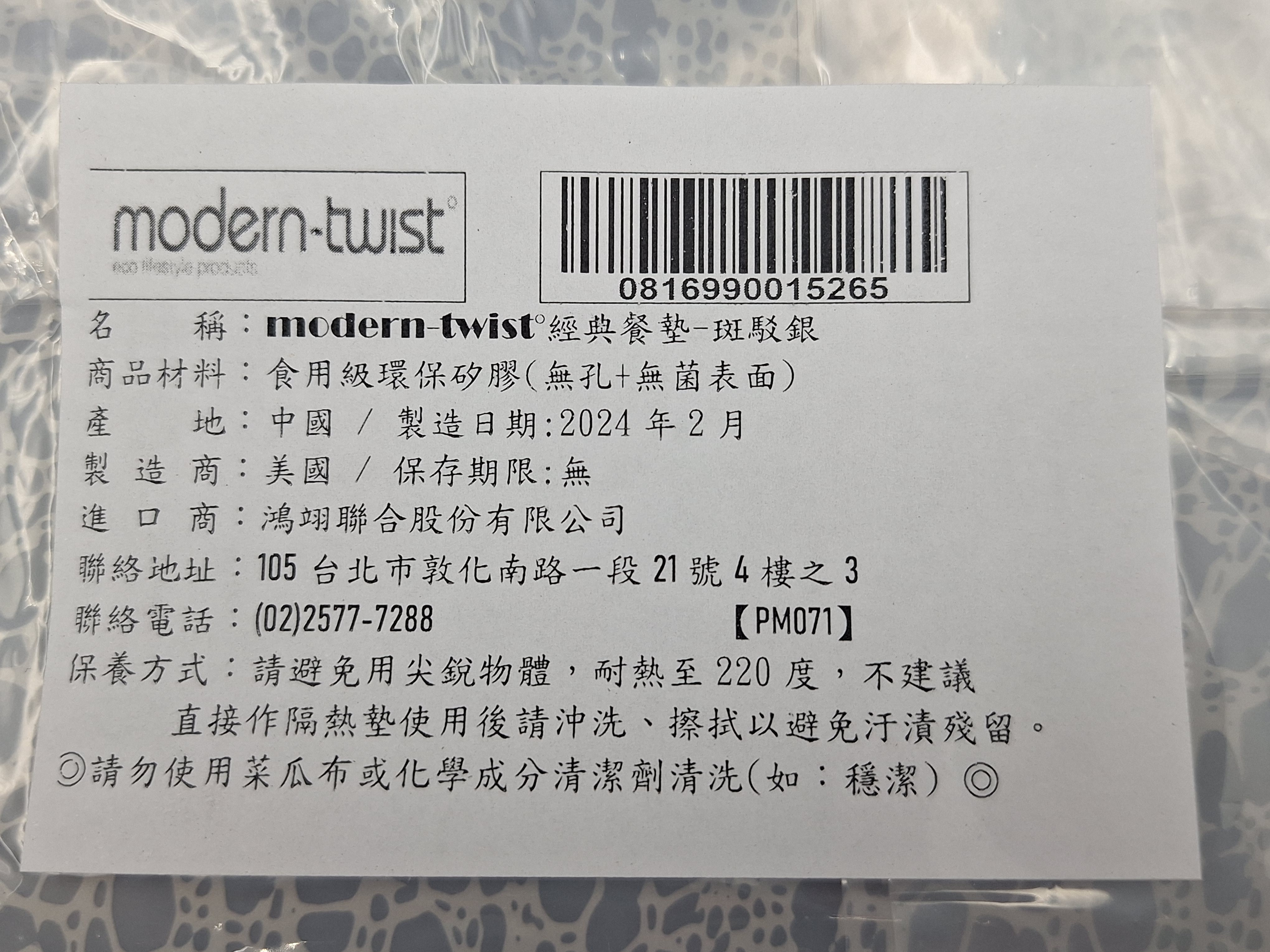 為您的餐桌增添一抹現代優雅氣息,modern-twist經典餐墊以其獨特的斑駁銀設計,為用餐體驗帶來精緻質感。這款餐墊不僅美觀,無孔且無菌表面,確保安全衛生。耐熱高達220度,有效保護桌面免受熱食損害。清潔方便,只需沖洗擦拭即可,避免使用菜瓜布或化學清潔劑,延長使用壽命。無論是日常用餐還是特殊場合,這款餐墊都能輕鬆提升餐桌美感,讓您享受更美好的用餐時光。