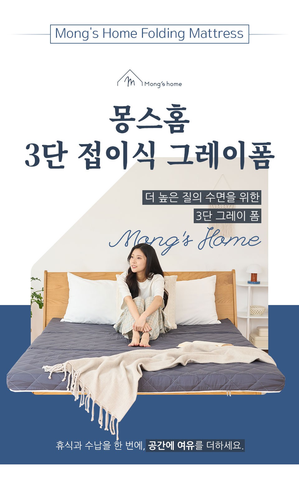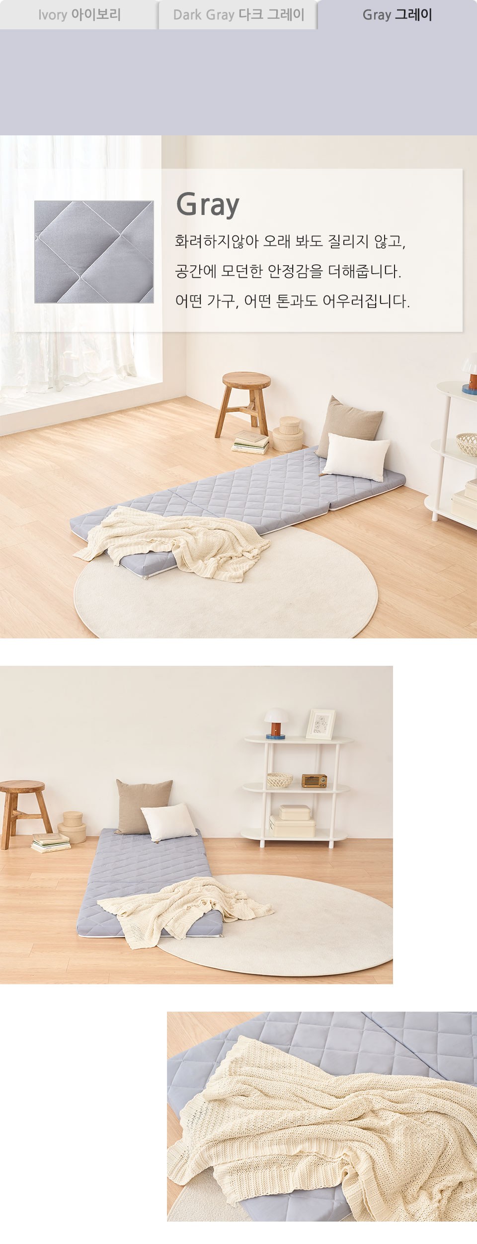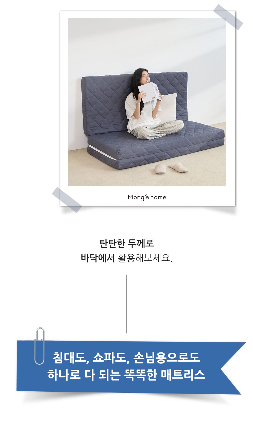 mongshome 三折式灰色泡棉床墊, 6cm, 象牙白