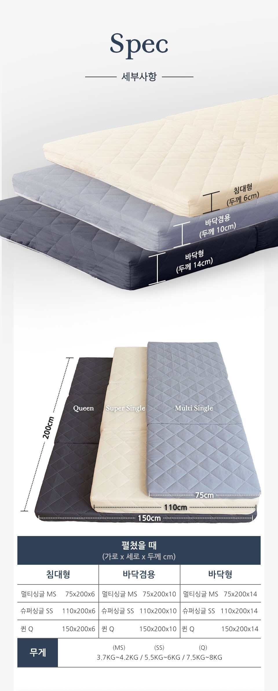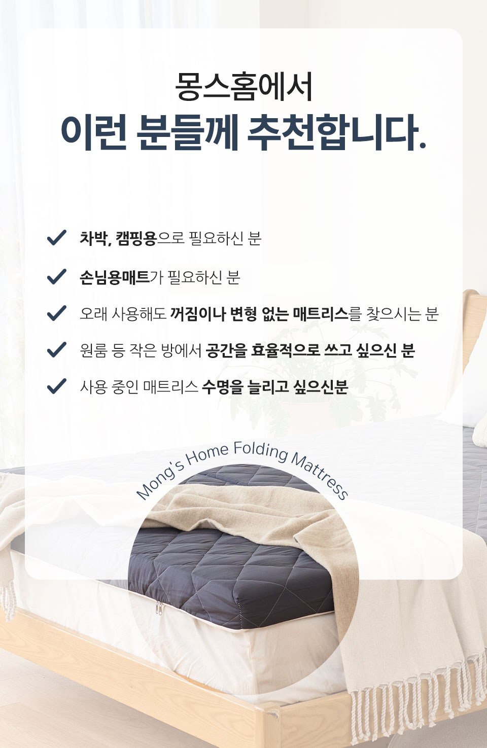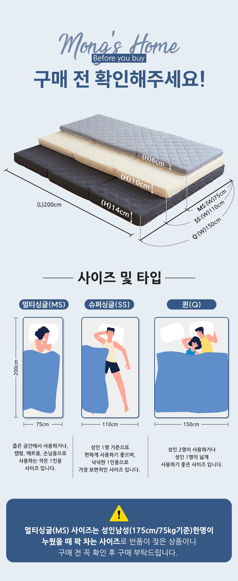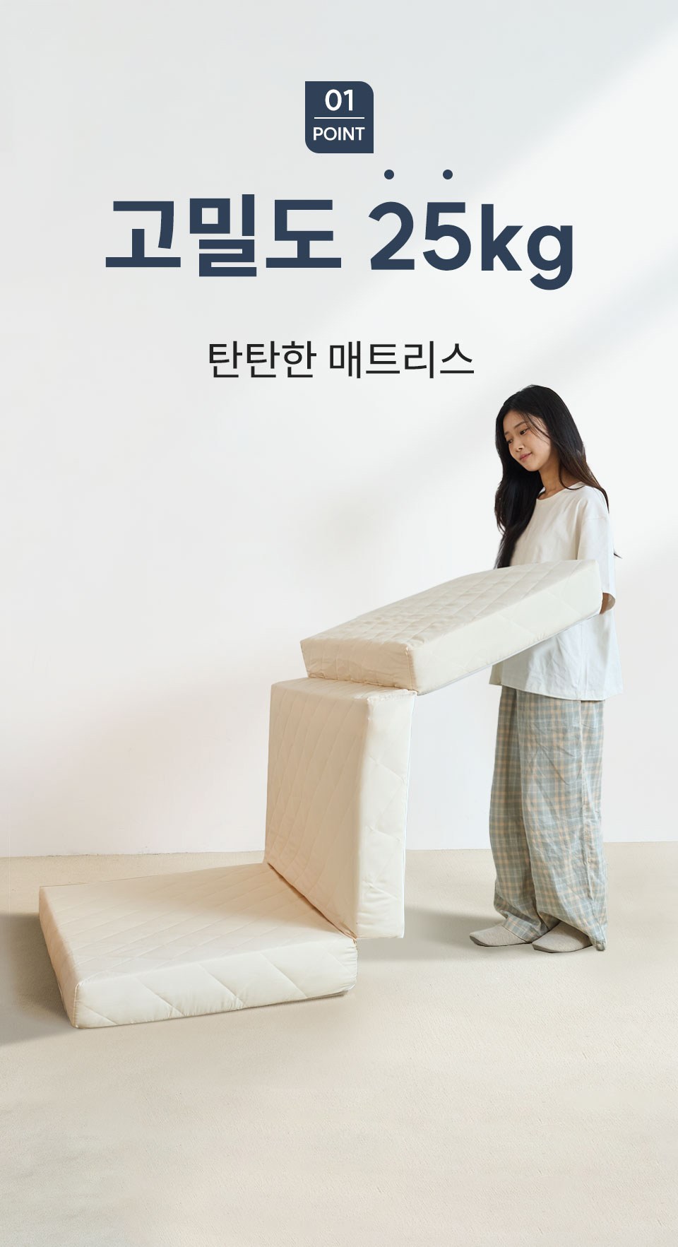 mongshome 三折式灰色泡棉床墊, 6cm, 象牙白