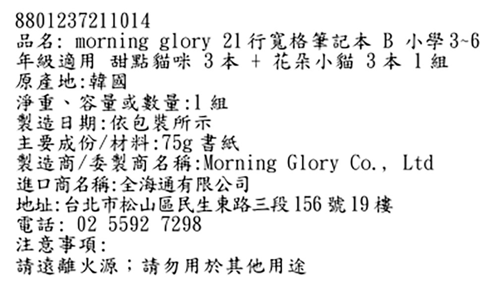morning glory 21行寬格筆記本是專為小學三到六年級學生設計的優質筆記本。每組包含三本甜點貓咪和三本花朵小貓圖案的筆記本,可愛的設計能激發孩子們的學習興趣。寬格內頁設計方便孩子們書寫,優質紙張提供流暢的書寫體驗,保護視力。尺寸適中,方便攜帶,讓孩子們隨時記錄學習與生活。這款筆記本是孩子們學習路上的好幫手,也是一份充滿童趣的禮物。