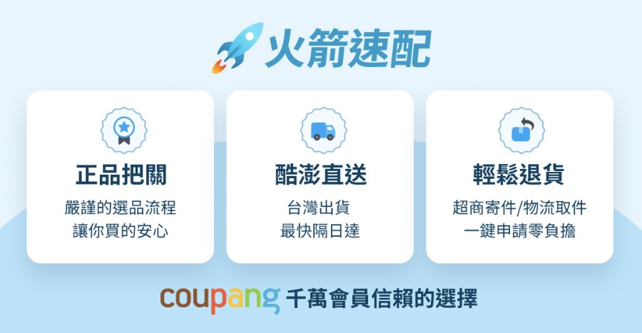 | 運費 | 免運 - 宅配:火箭速配產品訂單價格超過$490免運費 - 超取(全家、7-11):火箭速配產品訂單價格超過$490免運費 - 暫不支援離島配送 |