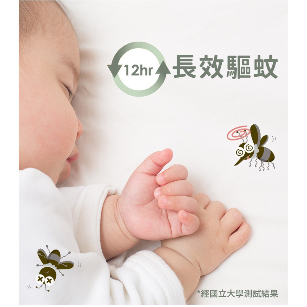 - 長效12小時防蚊保護,減少重複更換的麻煩,讓寶寶安心玩耍,媽媽更放心。
