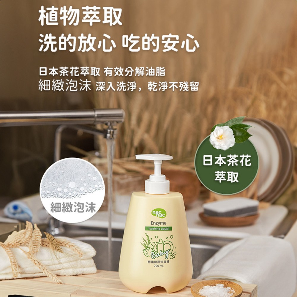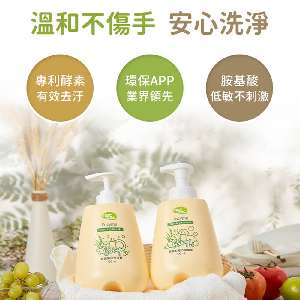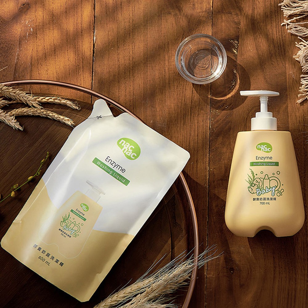 nac nac 酵素奶瓶蔬果洗潔精補充包,600ml大容量,經濟實惠。專為寶寶設計,能有效分解奶垢、食物殘渣及蔬果上的農藥殘留,讓寶寶的餐具和食物保持潔淨安全。97%高生物分解,不含磷、螢光劑等有害物質,溫和不刺激,通過低敏肌膚測試,讓媽媽安心使用。符合CNS3800國家標準,可直接清洗蔬果等食品,洗的放心,吃的安心,就從nac nac酵素奶瓶蔬果洗潔精開始。