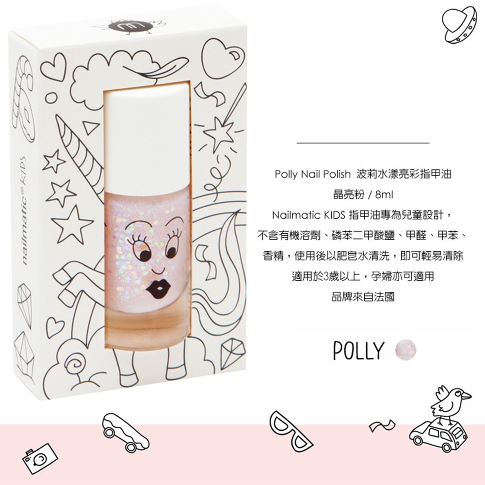 - 水性配方設計,輕鬆卸除不傷指甲,讓孩子隨心所欲變換指彩風格。