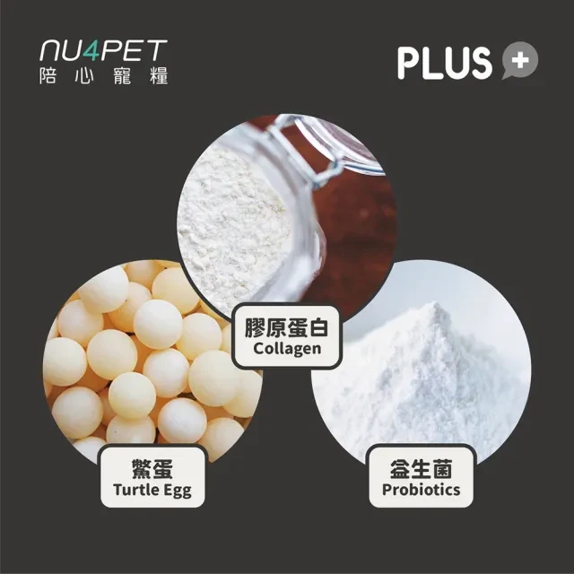 NU4PET 陪心寵糧 機能Plus 貓三寶鱉蛋爆毛粉,是專為貓咪設計的營養補充品,能有效促進毛髮健康亮麗。本產品富含鱉蛋粉、膠原蛋白和益生菌,有助於增強皮膚的保濕能力,並提供毛髮所需的營養,讓貓咪擁有柔順光亮的毛髮。鱉蛋富含高蛋白、低脂肪和低膽固醇,有助於維持皮膚健康,達到毛色健康亮麗的效果。此外,本產品還添加了皮膚保健益生菌和酵母B群。每日只需將適量粉末與食物充分混合後餵食,即可輕鬆為愛貓補充所需營養,讓牠們擁有健康美麗的毛髮。