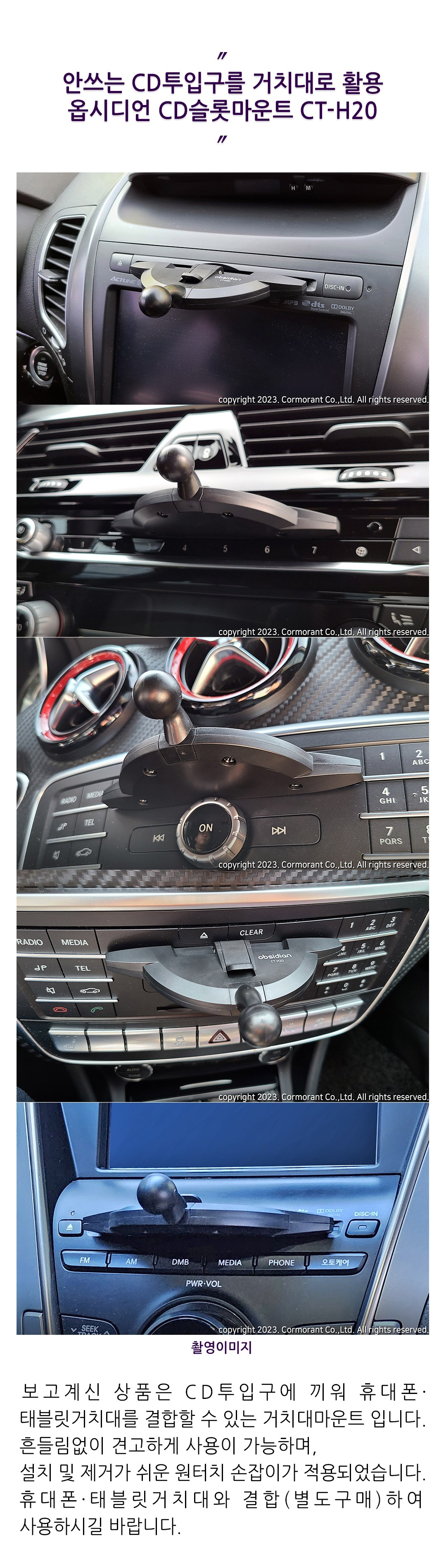 這款obsidian車用手機CD槽支架CT-H20,巧妙利用不常用的CD插槽,將其轉化為穩固的手機支架底座。安裝簡便,只需單手操作即可完成,不影響駕駛視線,確保行車安全。其17mm球頭設計,相容市面上多數手機支架,方便您搭配使用。採用堅固耐用的材質,確保手機在行駛過程中穩固不晃動。讓您在享受音樂的同時,也能輕鬆導航或接聽電話。
